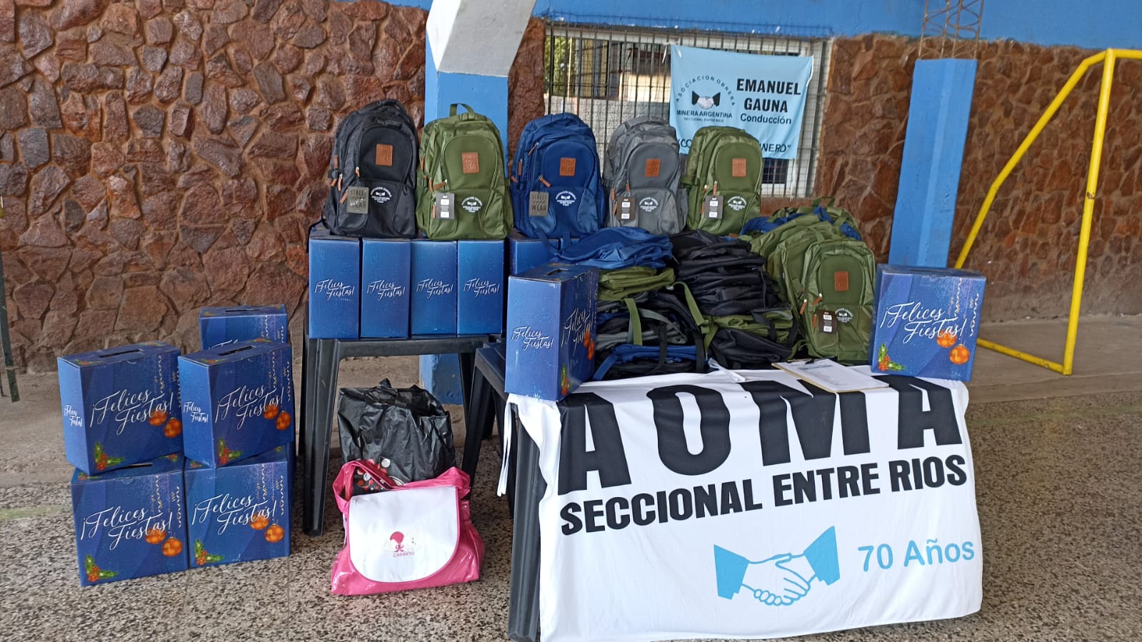Ambos eventos tuvieron una gran convocatoria y en un clima muy ameno y festivo los dirigentes hicieron entrega a su afiliados de mochilas como obsequio por el Día del Minero y de cajas navideñas