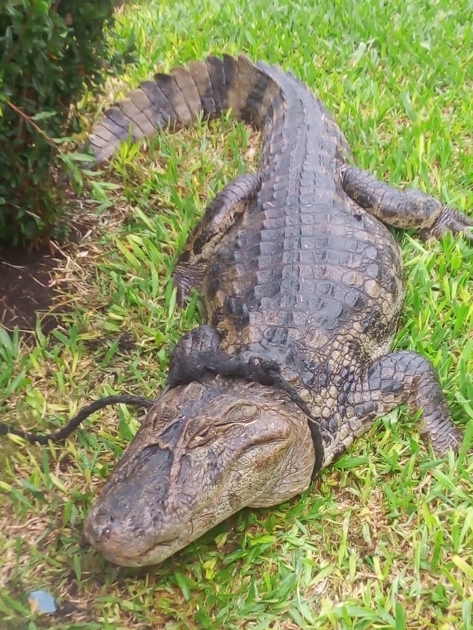 En horas del mediodía de ayer apareció en Barrio El Progreso de Piedras Blancas un Yacaré de grandes dimensiones. El Sargento Primero Esquivel, de guardia en el Destacamento Policial de la Zona, fue quien descubrió la presencia de un ejemplar de yacaré de aproximadamente unos 2 y 1/2 metros y dio aviso a las autoridades.