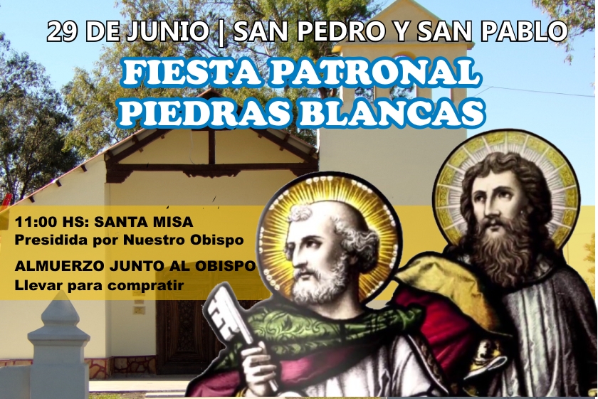 Desde la Capilla San Pedro y San Pablo de Piedras Blancas se invita a toda la comunidad a celebrar la misa presidida por el ARZOBISPO MONSEÑOR JUAN ALBERTO PUIGGARI, el día 29 de Junio a las 11:00 hs. Luego compartiremos un almuerzo junto al Obispo .