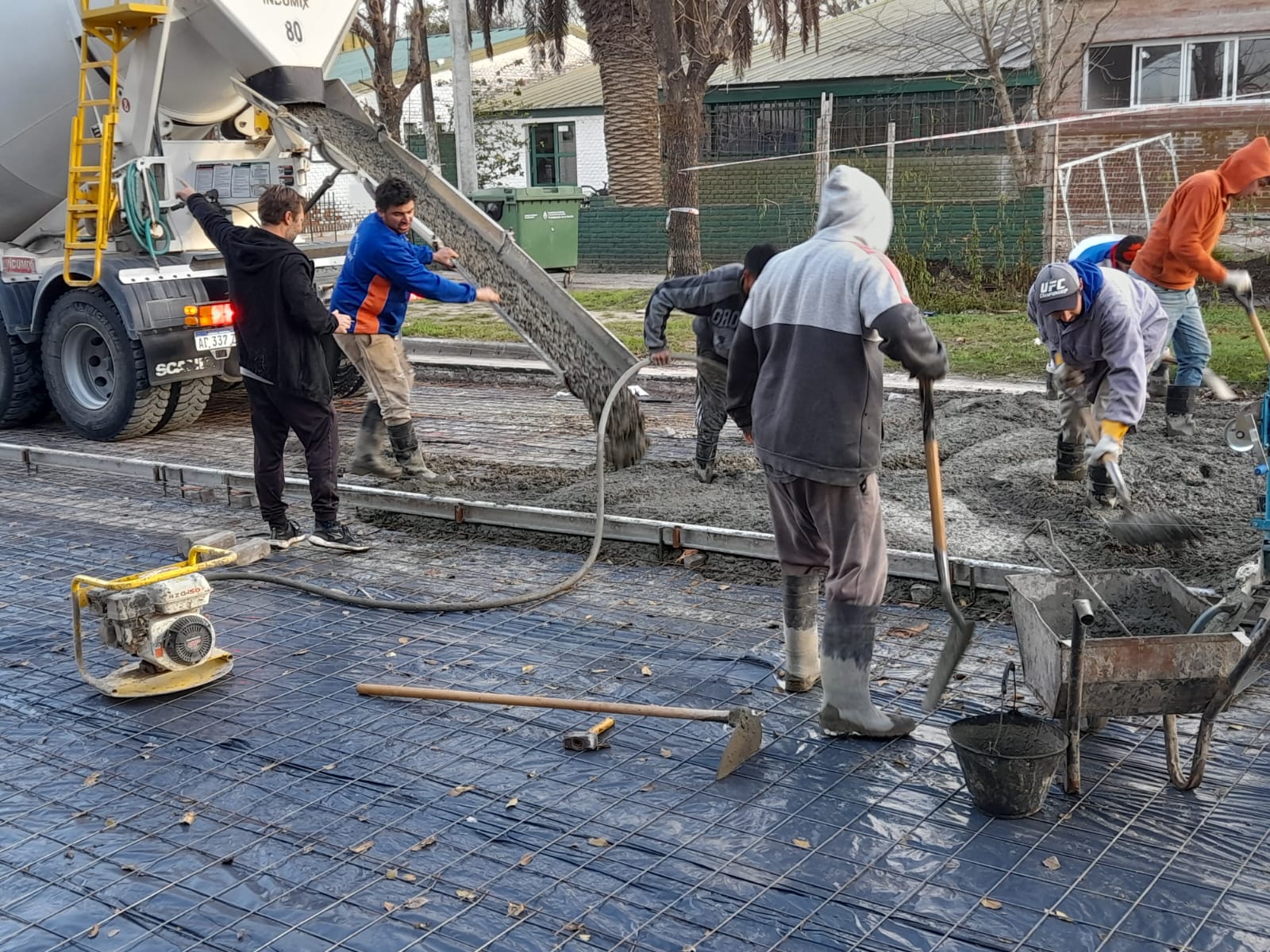 La obra en ejecución contempla trabajos de reparaciones en veredas, revoques, fisuras, cielorrasos, como también puertas de placares bajo ventanas, sanitarios y aberturas.