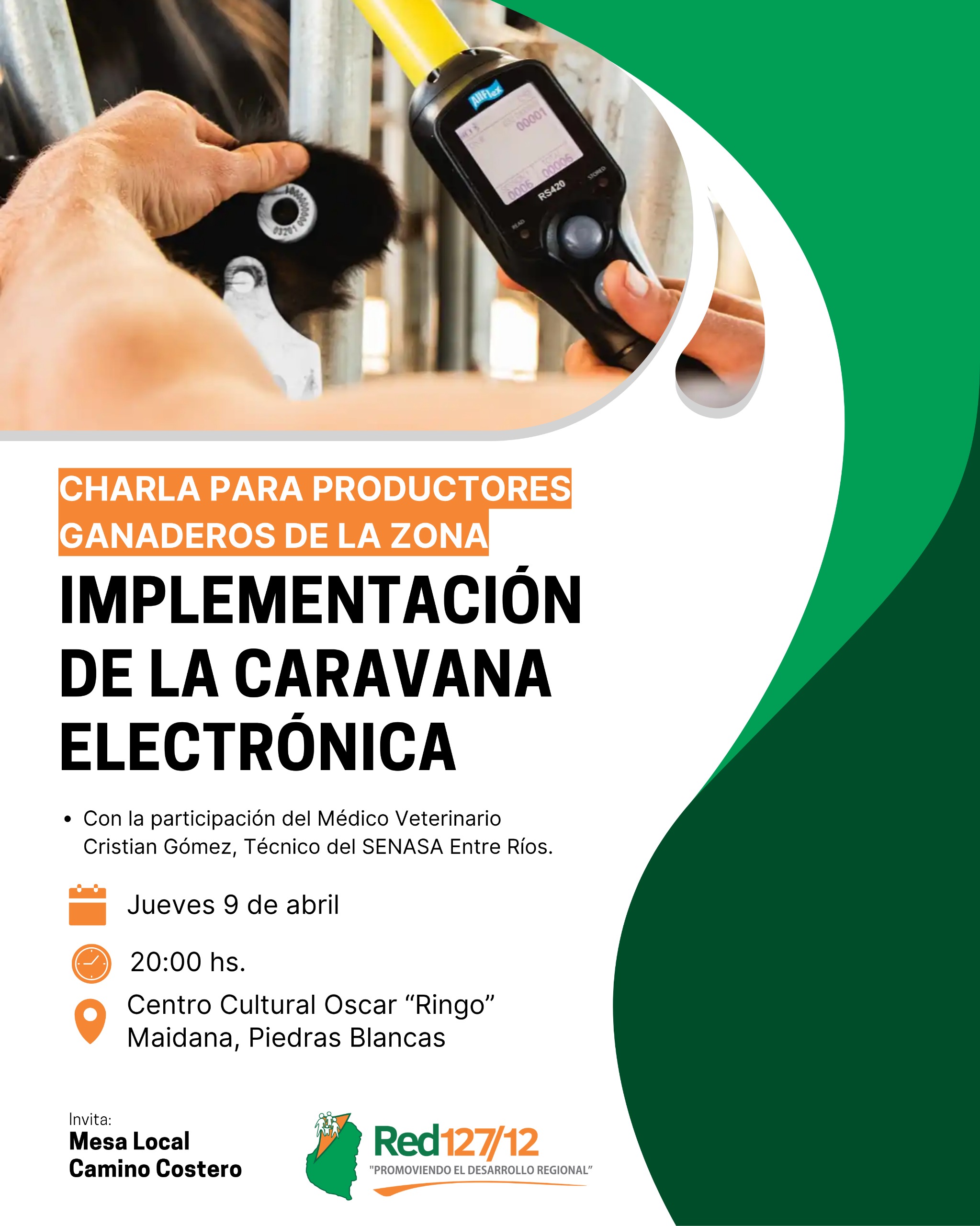 Productores ganaderos de de Piedras Blancas participarán de una charla informativa sobre la implementación de la caravana electrónica, una herramienta clave para la identificación y trazabilidad del ganado.