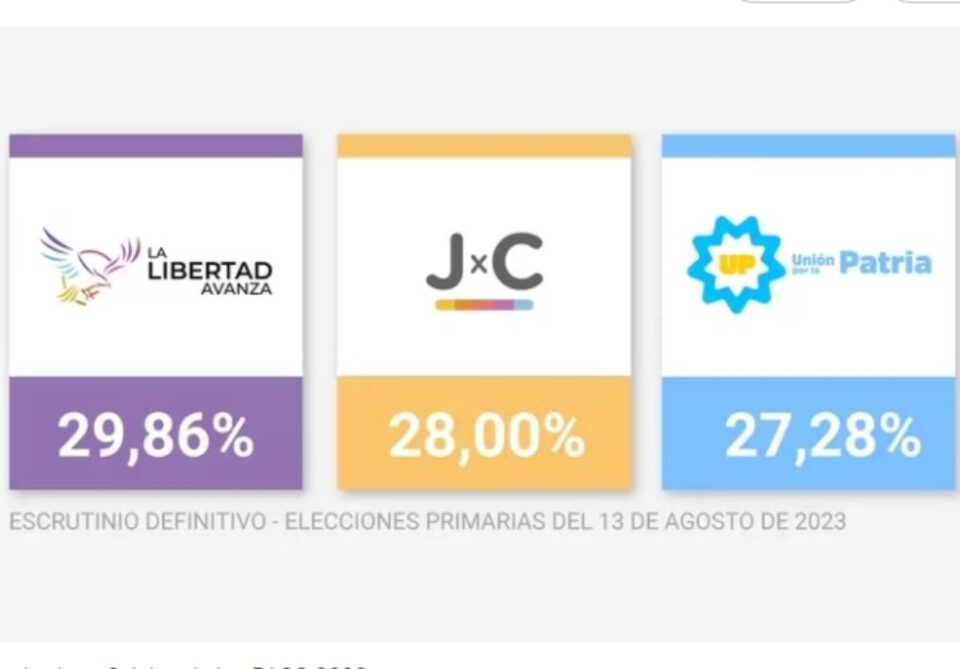 Y Unión por la Patria, la coalición oficialista que tiene a Sergio Massa como aspirante al sillón de Rivadavia, sumó 27,28 por ciento (6.719.042 votos).