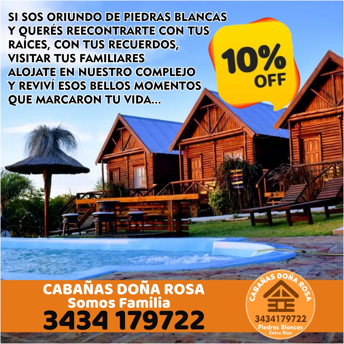 Para impulsar esta nueva alternativa turística «desde el Complejo Doña Rosa ofrecemos descuentos a todas aquellas personas oriundas de Piedras Blancas que quieran reencontrarse con sus raíces, con sus recuerdos, visitar sus familiares y revivir esos bellos momentos que marcaron su vida» señaló Adriana Vitor, Administradora del Complejo de Cabañas «Doña Rosa».